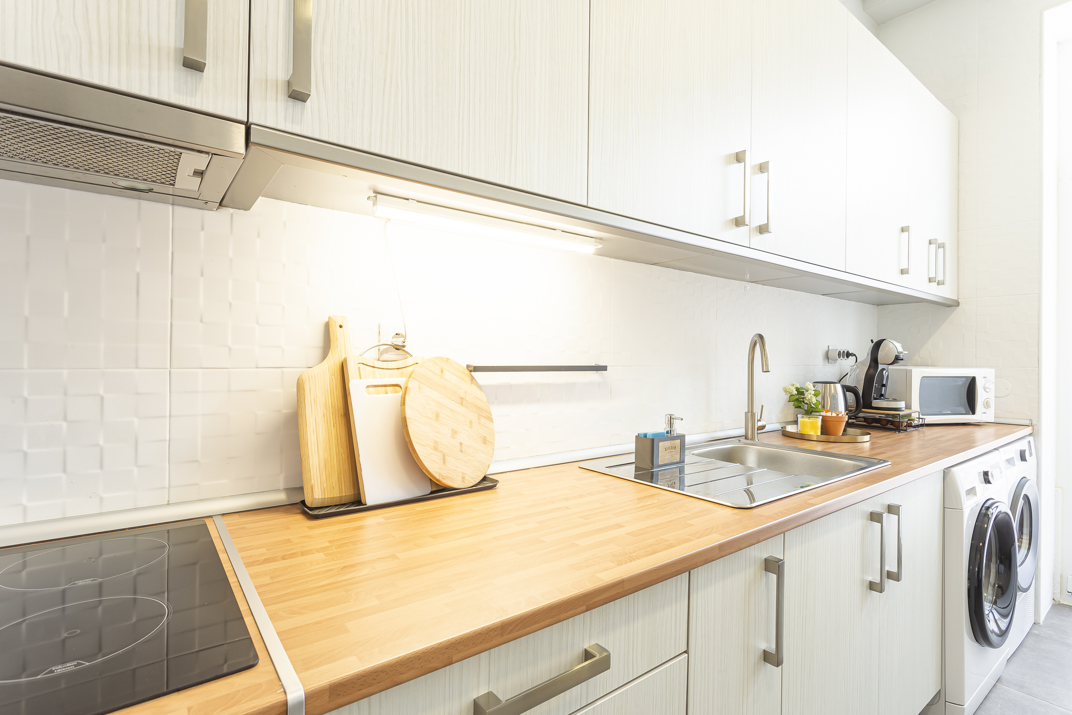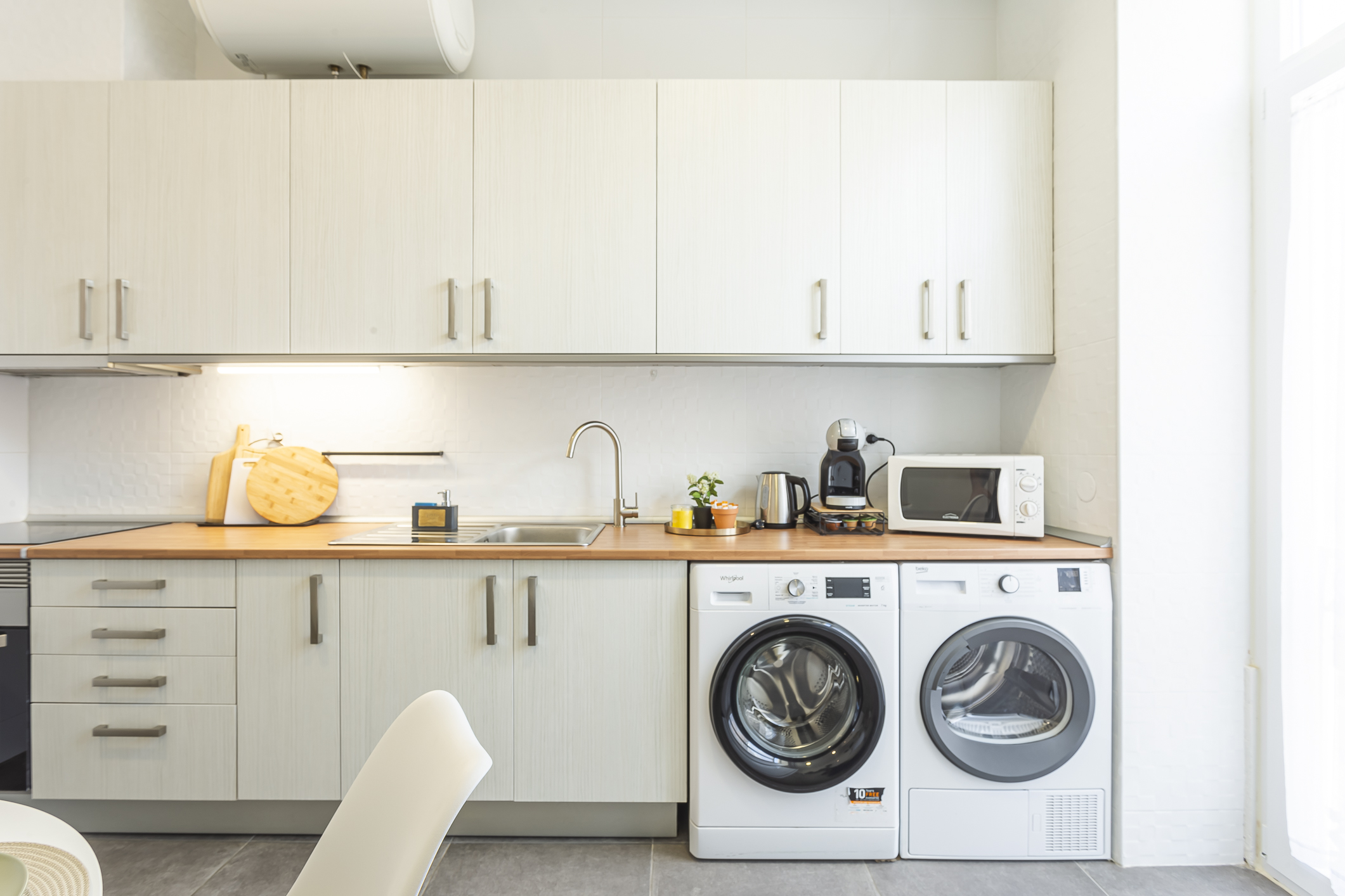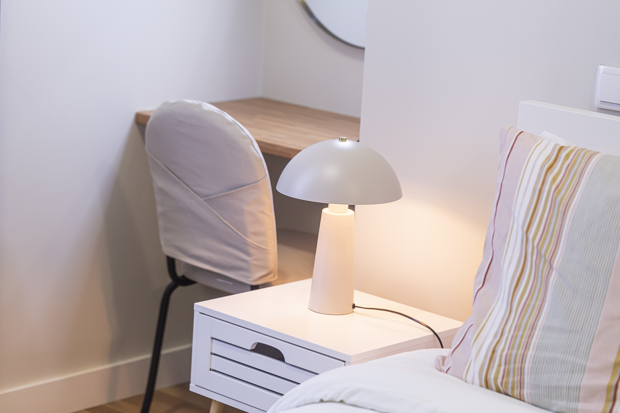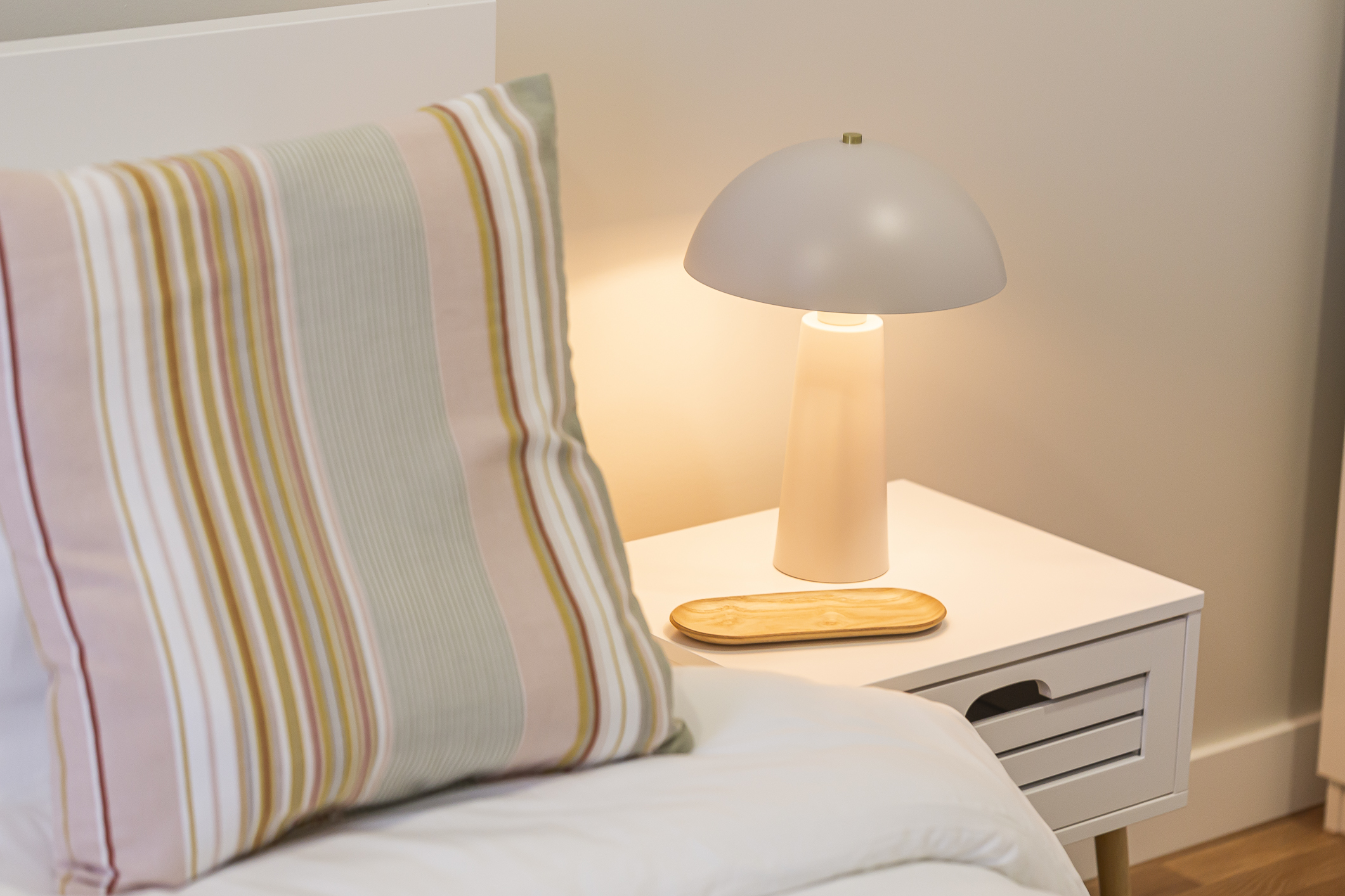 O apartamento foi desenhado para garantir silêncio e climatização perfeita. É o espaço ideal para famílias, casais em busca de romance na Arrábida e profissionais em missão de negócios na região do Porto de Setúbal ou na Autoeuropa.